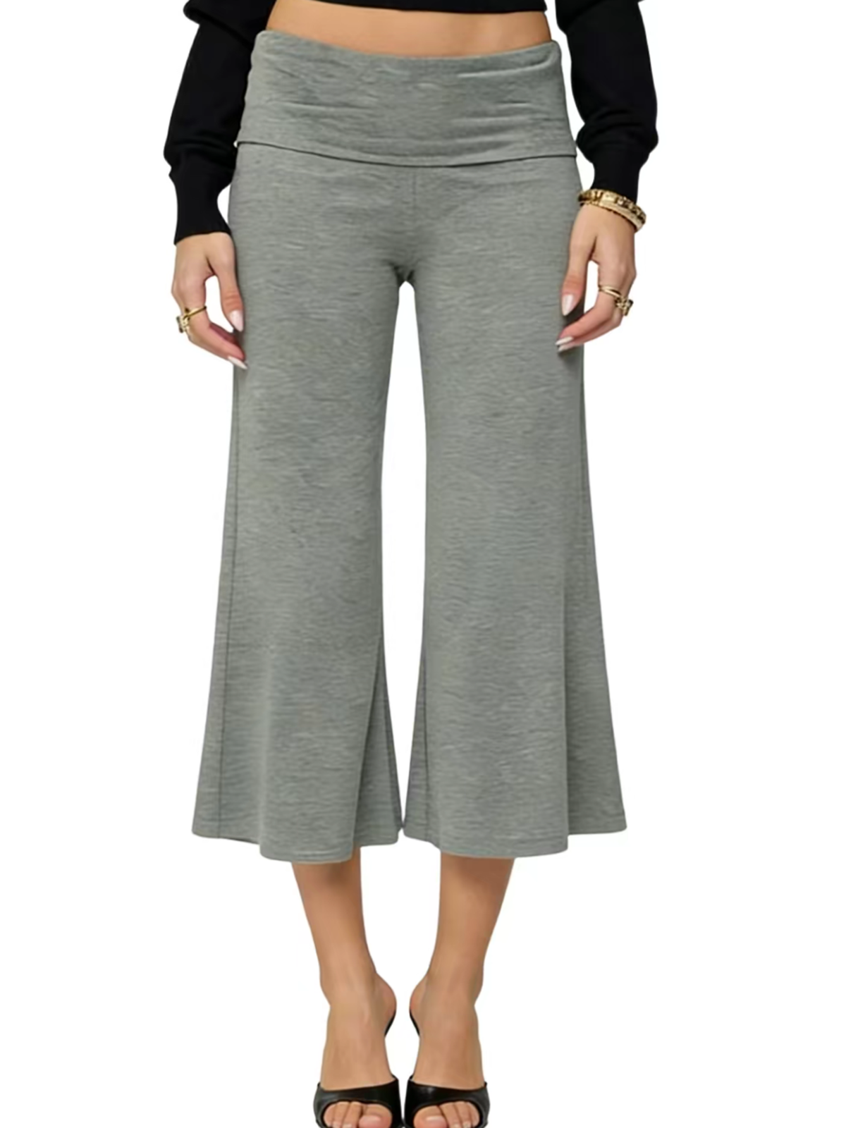 Fold Up Waistband For Tummy Control Capri Pants