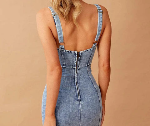 Stretch Sleeveless Denim Dress With Slit