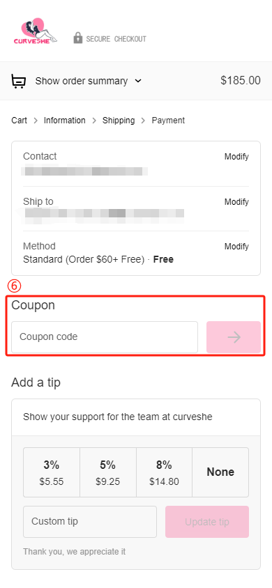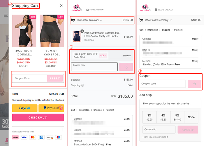 There are three pages you can apply a coupon: The shopping cart page; The order summary page; The payment page.
