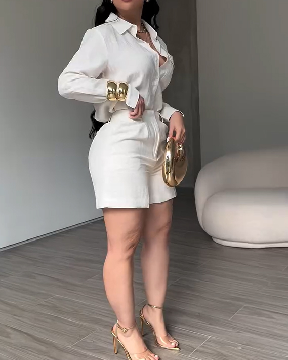 2 Piece Sets For Women Fashion Casual linen Shirts And Shorts