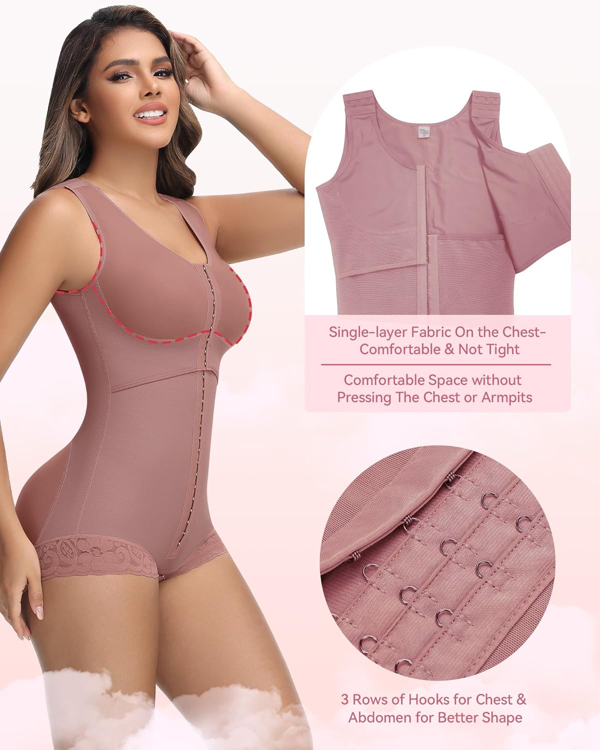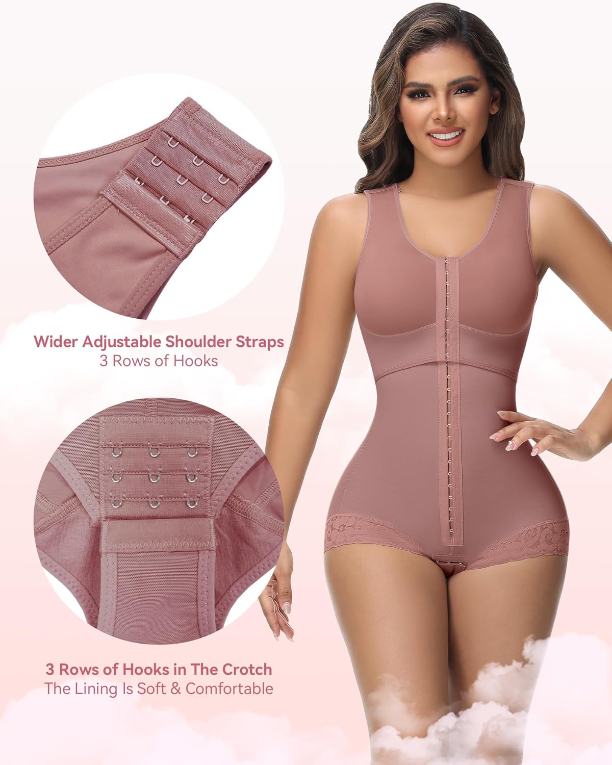 2. 3 levels of adjustment for customizable compressionCash design and back coverage for a soft silhouette.Perfect for short clothes, you will feel safe and comfortable all day.