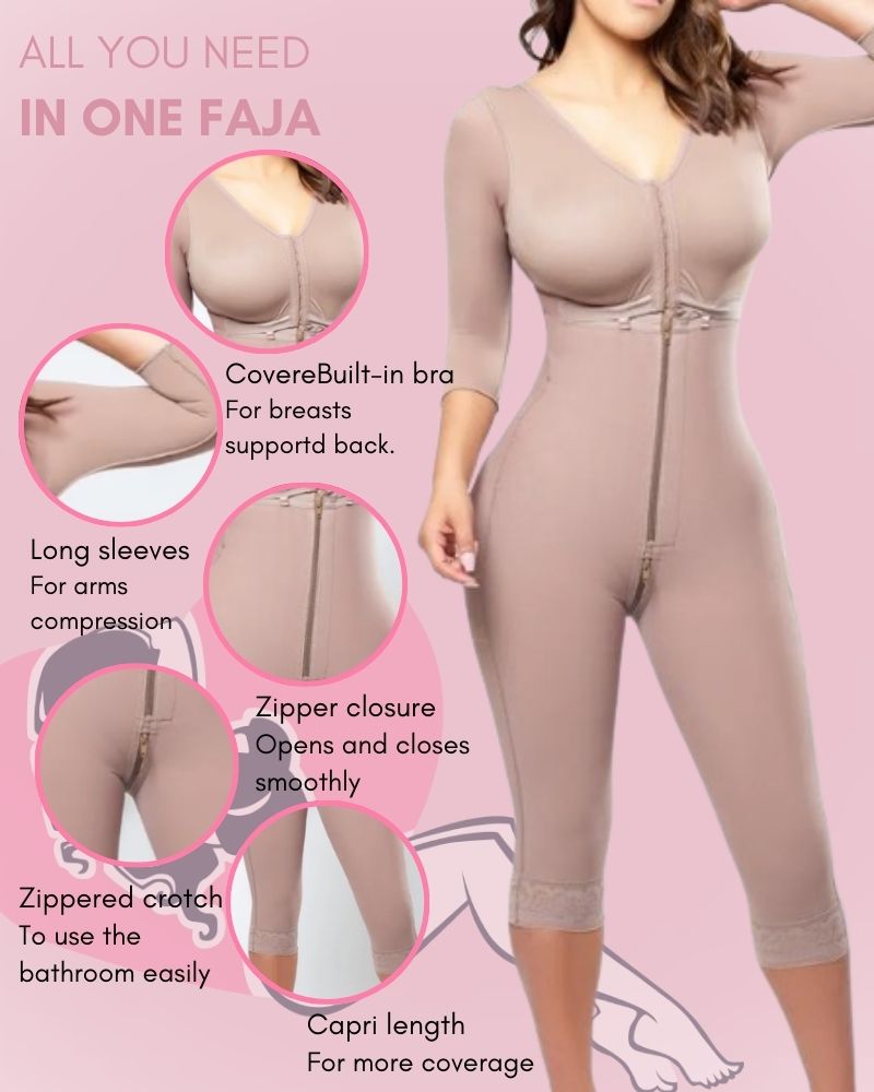 Full Body High Compression Tummy Control Mid-leg Faja With Sleeves
