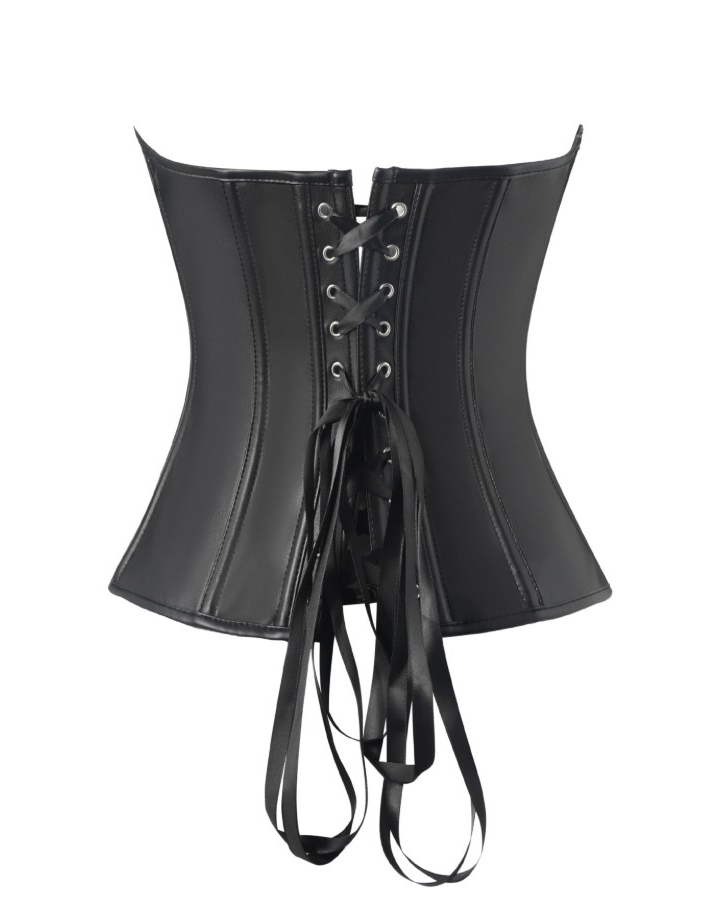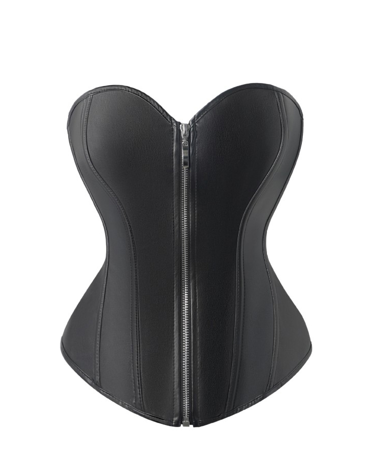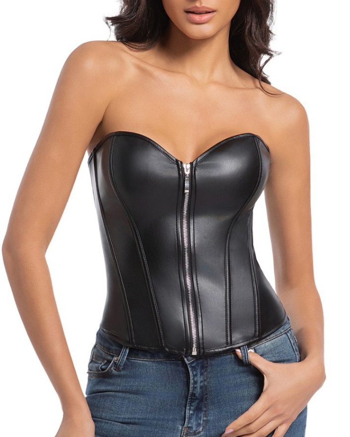 Sexy Front Zipper Tummy-Control Leather Corset Top