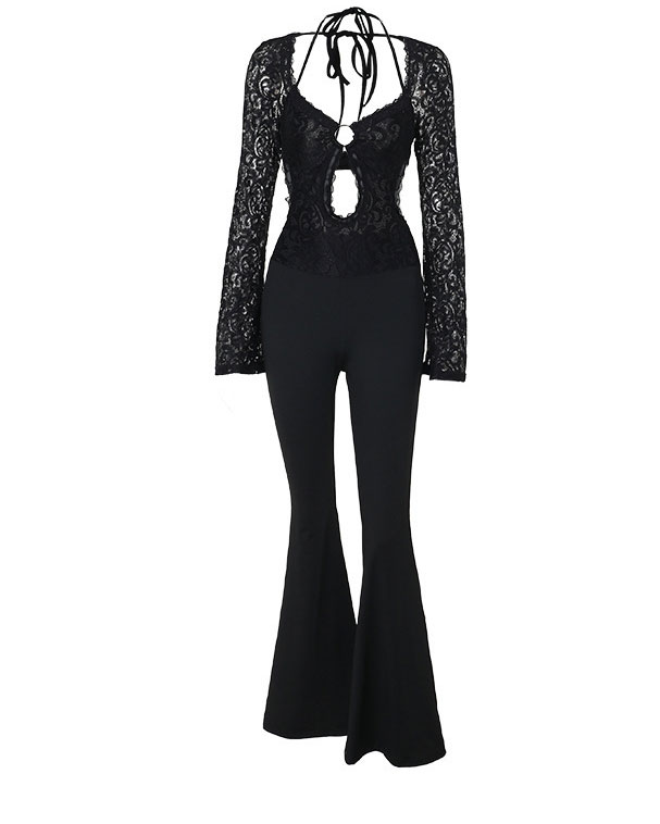 Temperament Slimming Long Sleeve Lace Backless Jumpsuit