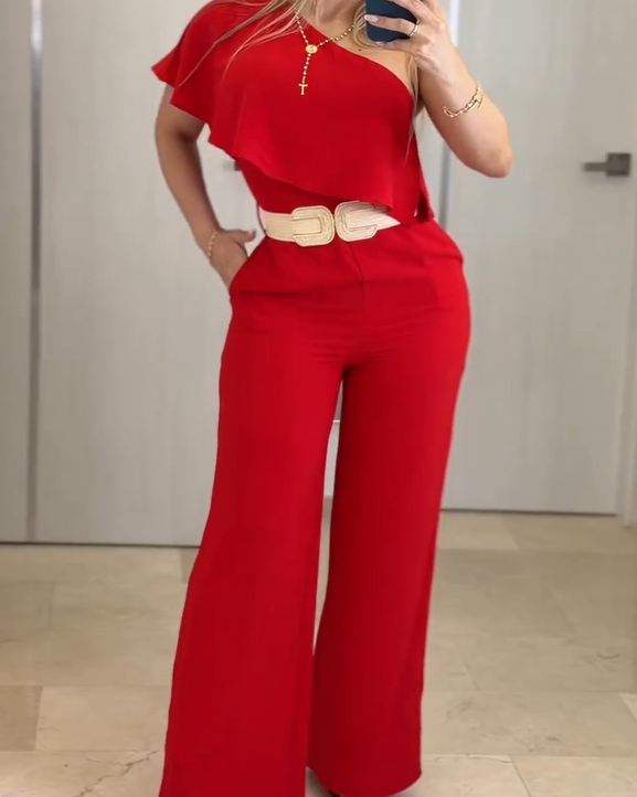 Women's Fashion Halter Neck Waist Wide Leg Jumpsuit