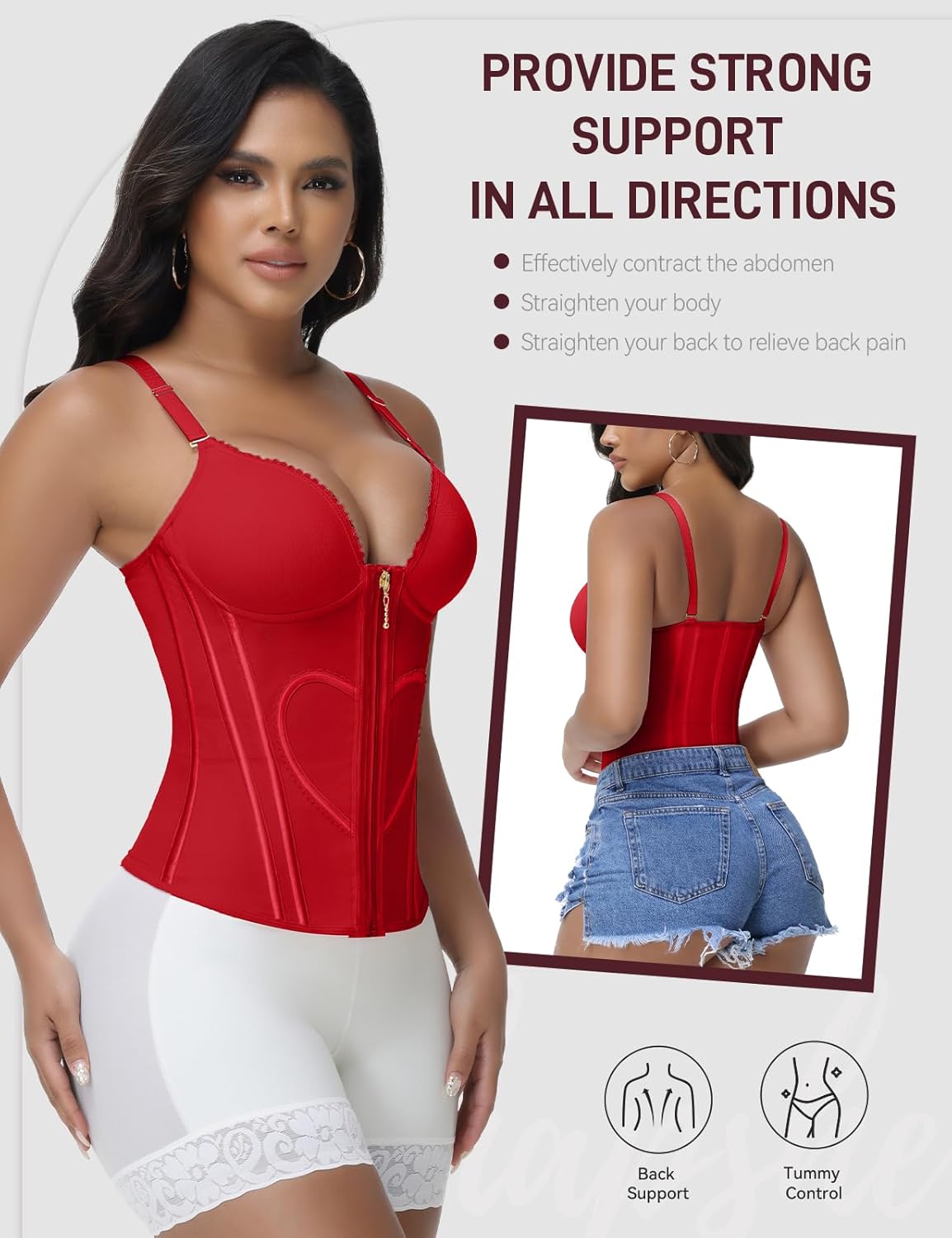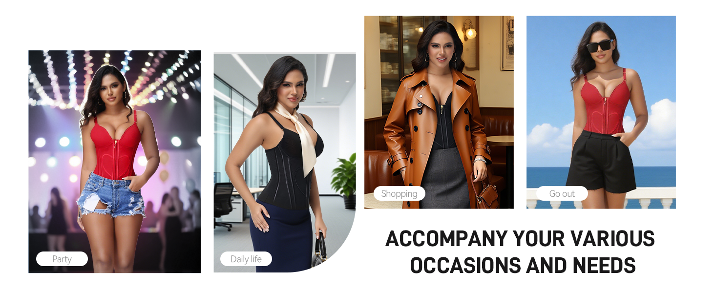 Women's going outing corset tops: The waist corset with bra will add brilliance to any scene. The body shaper great for dating with friends, or night club,or daily hangout. This sexy going out party tops can help you boost your confidence, show off your sexy figure, and let you shine and show your charm at any time.